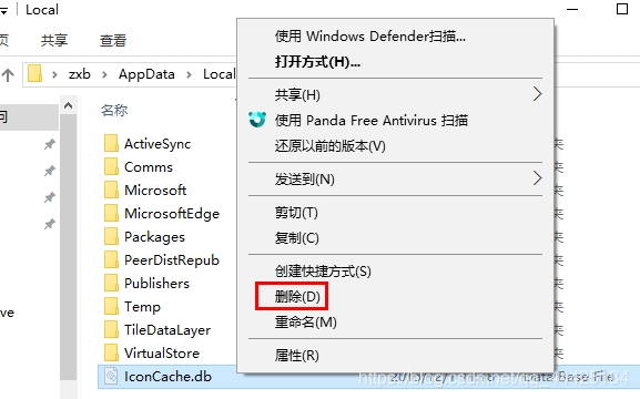 4.在打开的文件夹中,找到 Iconcache.db,将其删除。